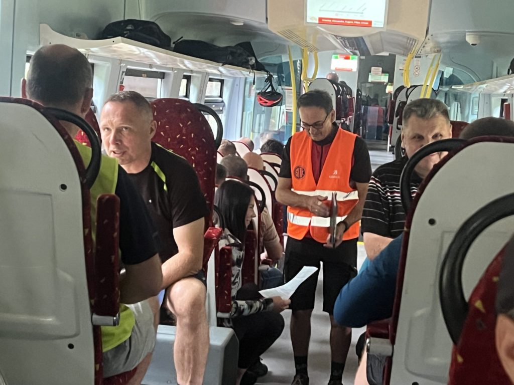 Po przeprowadzonym przez organizatora instruktażu i wyposażeni w kamizelki ochronne, uczestnicy, zwartą grupą, ruszyli ze Stacji Waliły w trasę mijając po drodze ciekawe miejsca i miejscowości: Waliły, Załuki, wieżę widokową i Królowy Most, „Kapliczkę” i pojechali dalej drogą do Białegostoku. Trasa nadal przebiegała malowniczymi ścieżkami GreenVelo, Traktem Napoleońskim, by zakończyć się w w Grabówce w Siedlisku Szeriwan. Dalsza część jazdy odbywała się  w miłej atmosferze, uczestnicy wspierali się wzajemnie w myśl dobrych zasad fair play. Spotkanie na miejscu tradycyjnie rozpoczęliśmy od wręczenia legitymacji i przypinek SITK nowym członkom, którzy wstąpili w szeregi KM SITK przy GDDKiA. Nowym 6-członkom legitymacje wspólnie ręczyli kol. Prezes Oddziału SITK RP B-stok Marek Motylewicz i Prezes KM SITK RP przy GDDKiA kol. Krzysztof Gleba-Zawadzki. Nowych członków powitano brawami.
