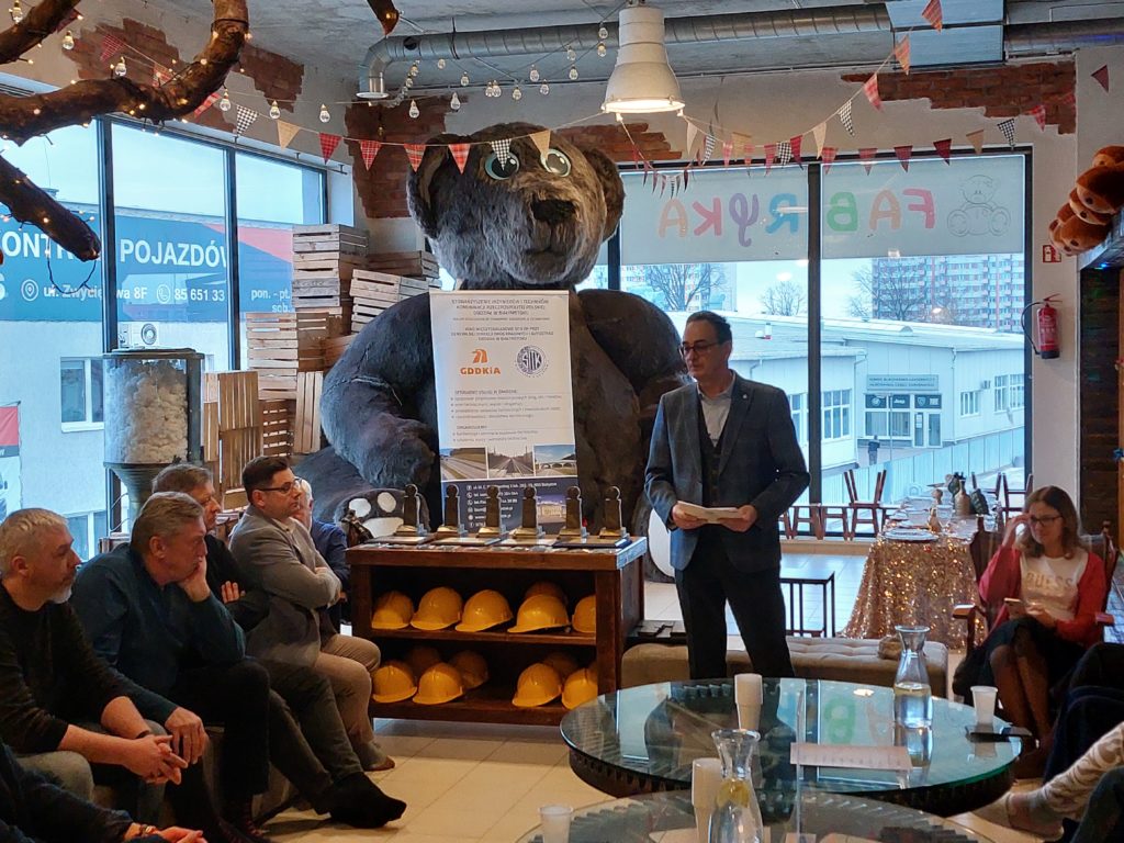 Krzysztof Gleba-Zawadzki został ponownie wybrany, jednogłośnie, na stanowisko przewodniczącego/prezesa Koła Międzyzakładowego SITK RP przy Generalnej Dyrekcji Dróg Krajowych i Autostrad Oddział Białystok. To najlepszy dowód uznania za wykonywaną pracę i zaufania, jakim obdarzają go koleżanki i koledzy z branży. To najważniejsza wiadomość z dzisiejszego (25 lutego 2026 r.) spotkania sprawozdawczo-wyborczego członków Koła. Odbyliśmy je po południu, w uroczej scenerii – sala w Centrum „Fabryka misia” w Białymstoku. Spotkanie bardzo sprawnie prowadził Krzysztof Gleba-Zawadzki.