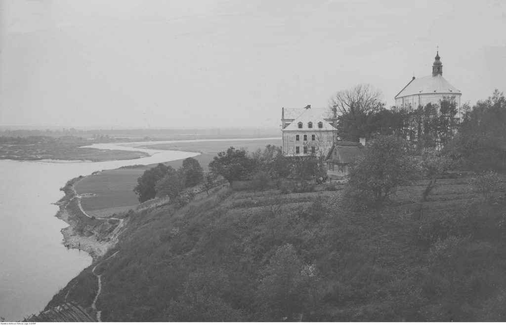 Kościół Trójcy Przenajświętszej (dawny Ojców Jezuitów) w Drohiczynie. Widok zewnętrzny kościoła wraz z panoramą Bugu. Koncern Ilustrowany Kurier Codzienny – Archiwum Ilustracji. Sygnatura: 1-U-937