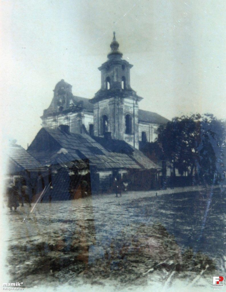 Reprodukcja zdjęcia, które wisiało w gablocie z informacjami turystycznymi. Widok z rynku w stronę kościoła franciszkanów.